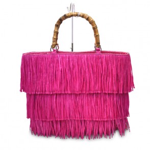 Borsa Summer con scocca in Neoprene e Frange di Rafia con manici in vero Bambù